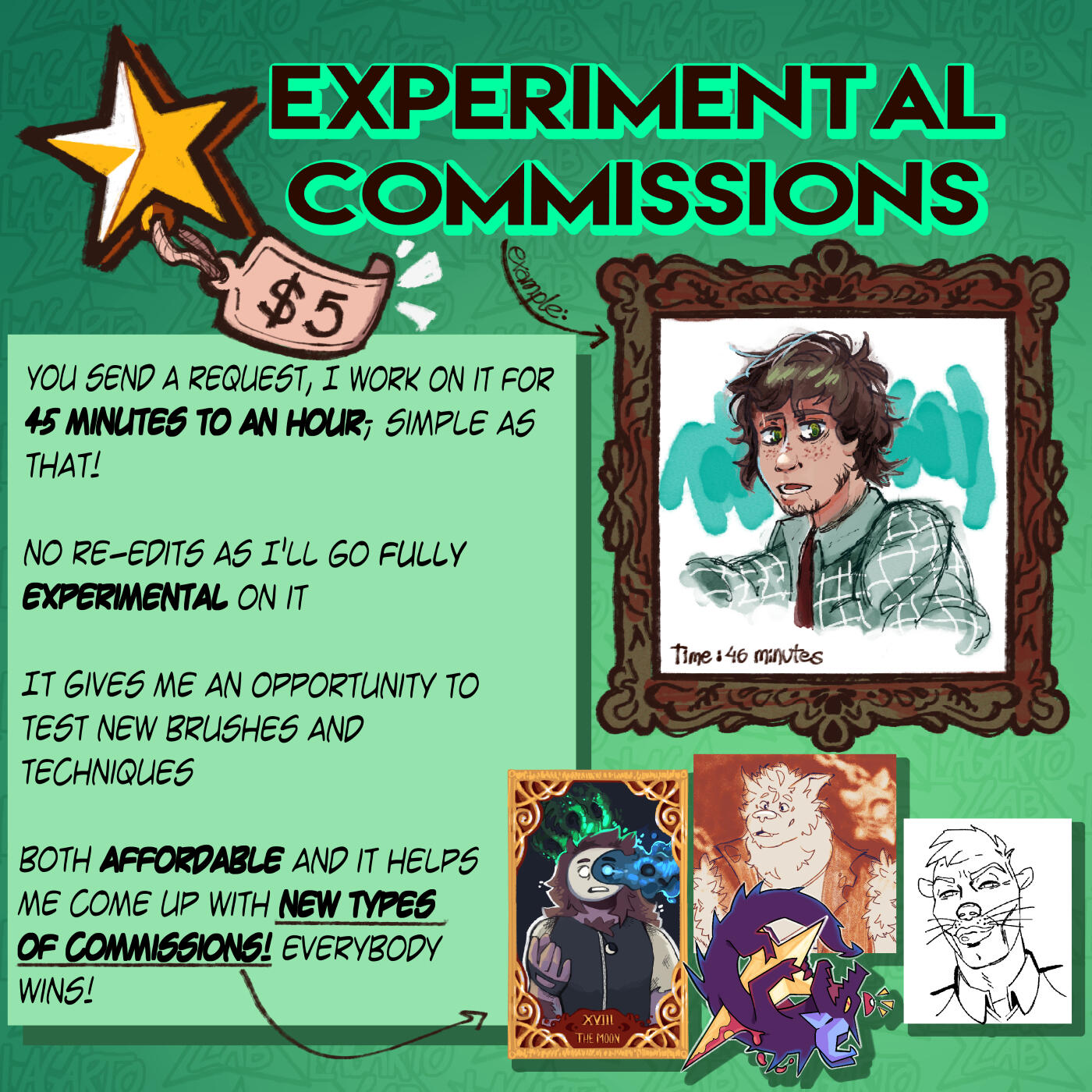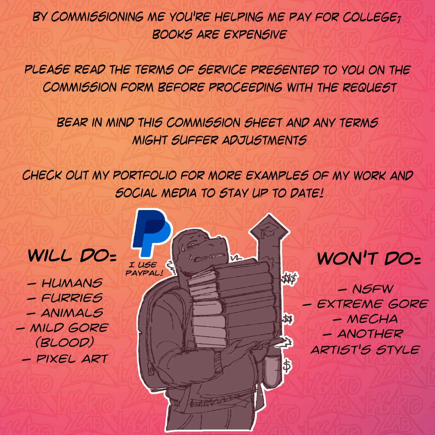 Hi! I'm an aspiring scientist from Portugal studying biochemistry and biomedical sciences. I also just so happen to enjoy making art! I've always enjoyed both subjects for as long as I can remember, and I intend on learning more and more as I go.I spend my time reading books and articles, and babble on about cool and new ideas that I happen to find with friends, ever so patient. I also like playing videogames and D&D, the latter being a great creative outlet for me.I'm currently studying for my Master's, hence I've decided to open commissions. If you're interested in getting something from me it would be a great help!